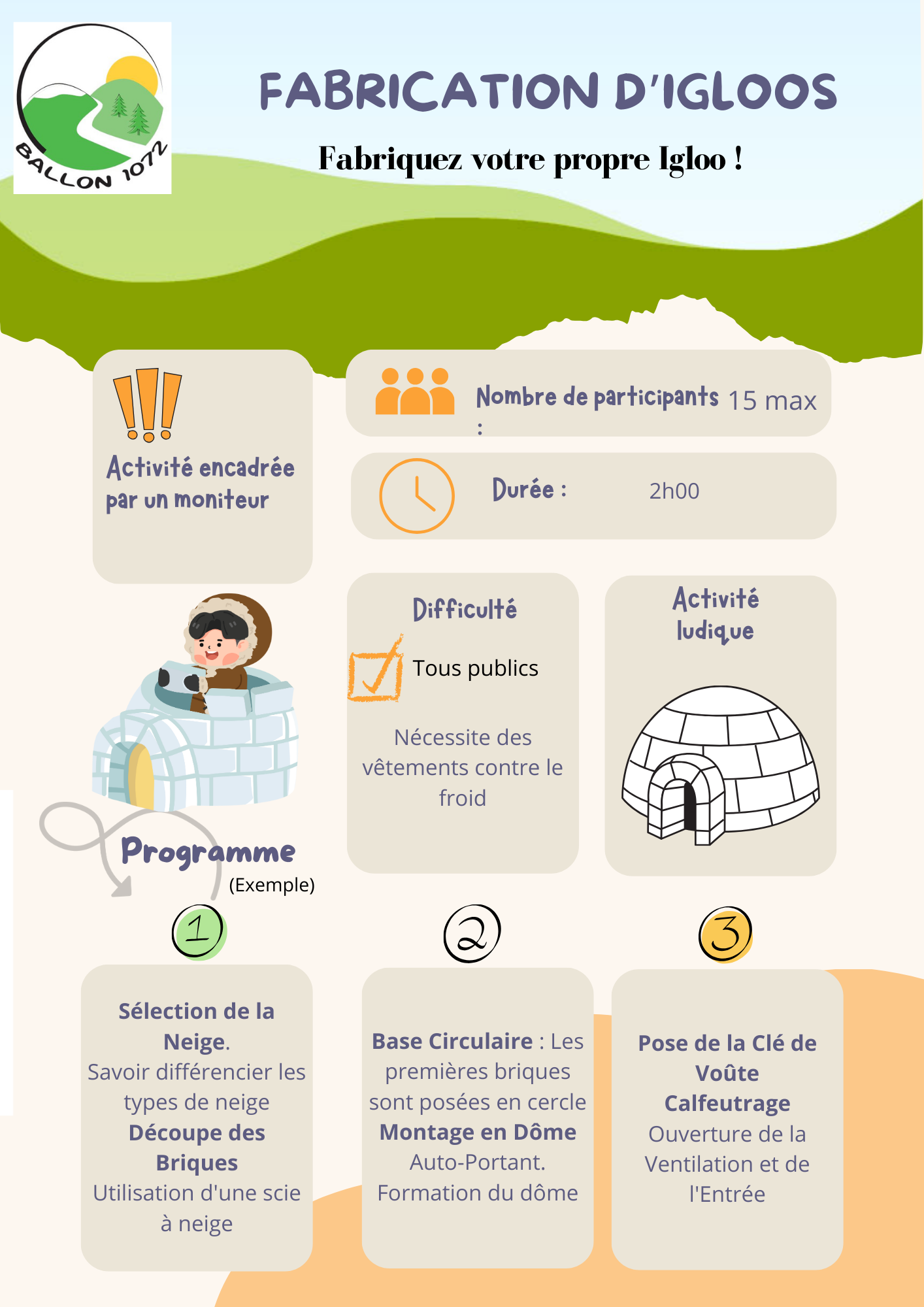 Nous vous attendons pour transformer la neige en un abri chaud et stable !