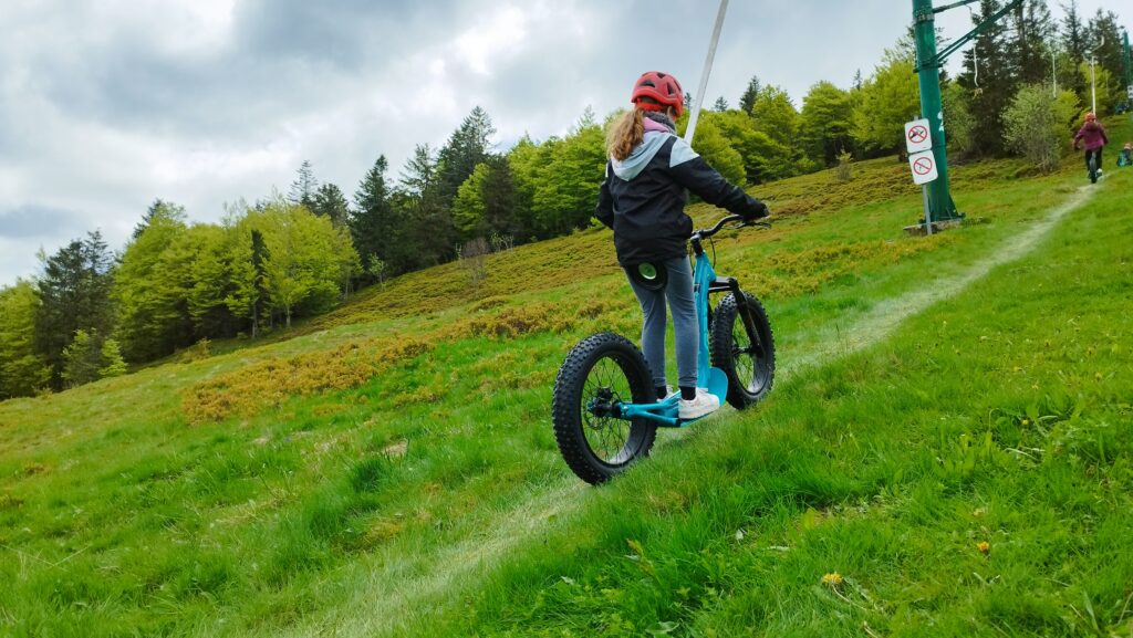 Grâce à nos trottinettes tout-terrain équipées de pneus robustes et à notre téléski innovant, converties pour un usage 4 saisons, le plaisir de la glisse ne dépend plus de la neige. Que le sol soit enneigé, en herbe ou boueux, montez temporairement au sommet et dévalez la piste en toute sécurité.